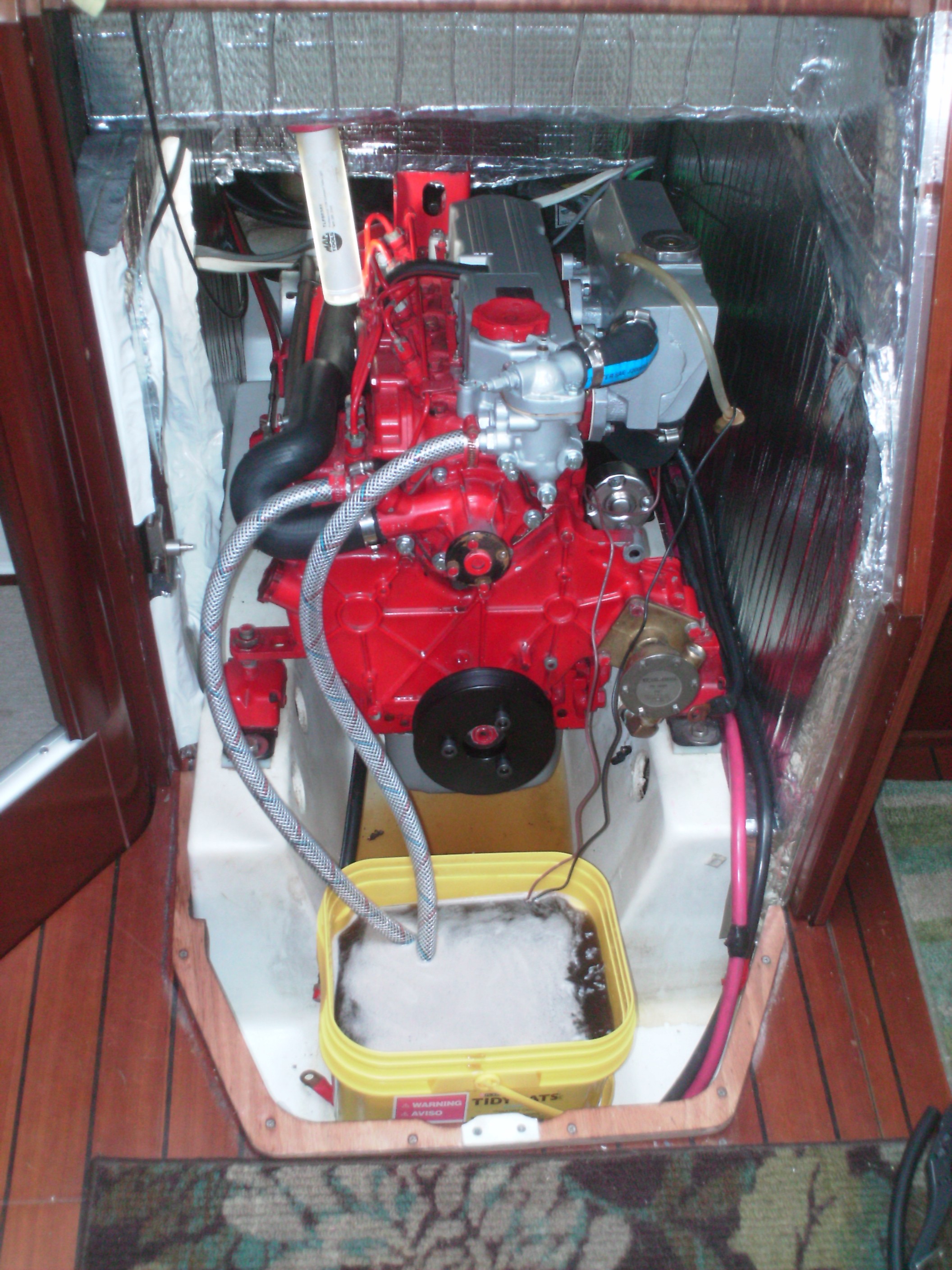 I’ve been working hard to get the engine reassembled and ready to fire up before we’re out of the water. Things are getting close, and I plan on getting the rest of the hoses installed today and start it tonight. Here’s a quick progression of the engine being reassembled:
