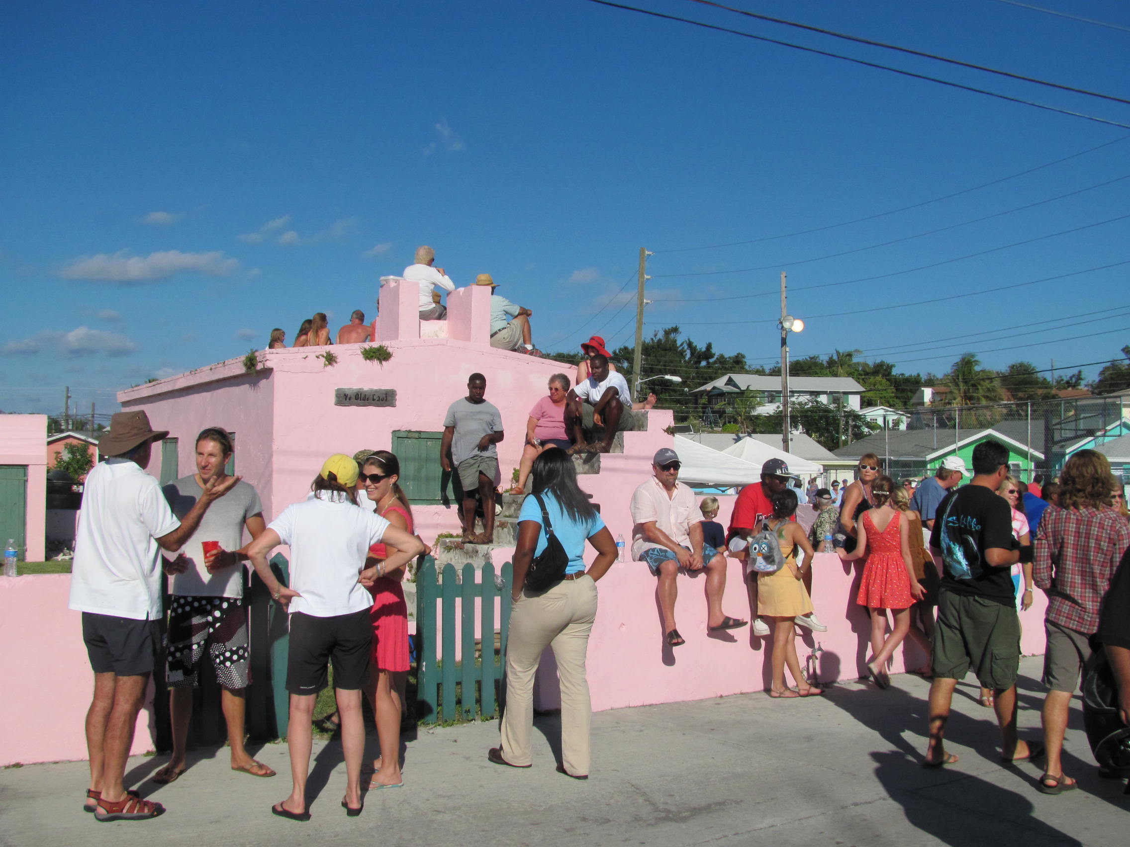 Sabrina and I took the dinghy around to Settlement Creek on New Plymouth yesterday afternoon for the local festivities. The amount of people compared to Friday was astounding, check out the two photos of the “Jail” below to see what I’m talking about.