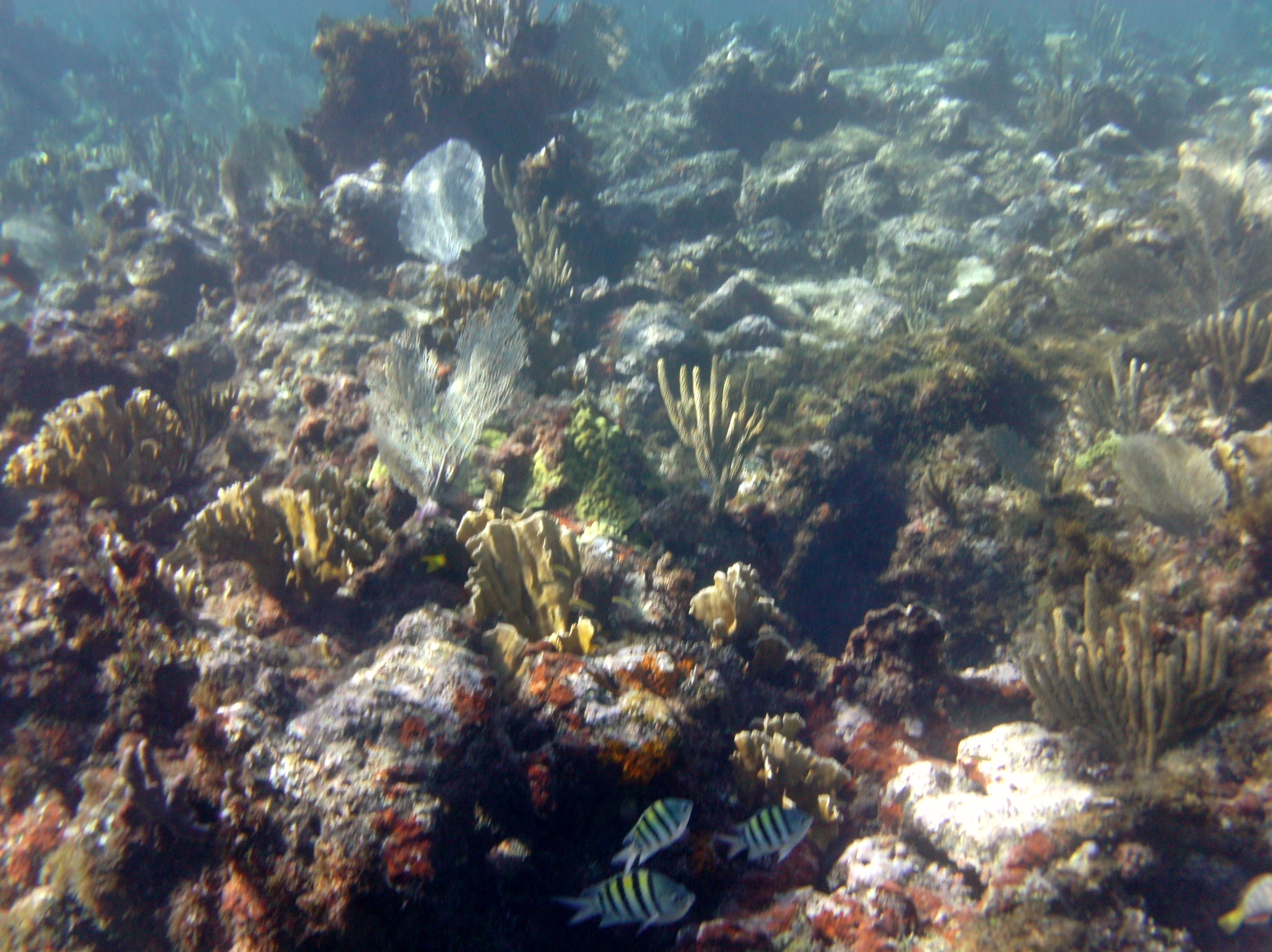 Yesterday we made a lucky decision to head out in the morning to do some snorkeling. There was only a light breeze and we were able to run the dinghy to the “Inner-Outer Reef” on No Name Cay. The sea fans there were exquisite, and I snapped some quick photos, unfortunately, the camera’s batteries died on me shortly after we got there. We also walked along the beach in Gillam Bay on the south side of Green Turtle Cay. Getting back the wind had increased to about 10 knots out of the west, a little wet in the dinghy, but nothing compared to today. We came back in time for the Buckeyes game, but alas, GTC doesn’t get ESPN2 and I called around to the other bars in White Sound on the VHF to see if anyone had the game, with no luck.