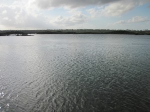 The blue holes are difficult to see unless the light is right,here’s a photo looking out across the hole: