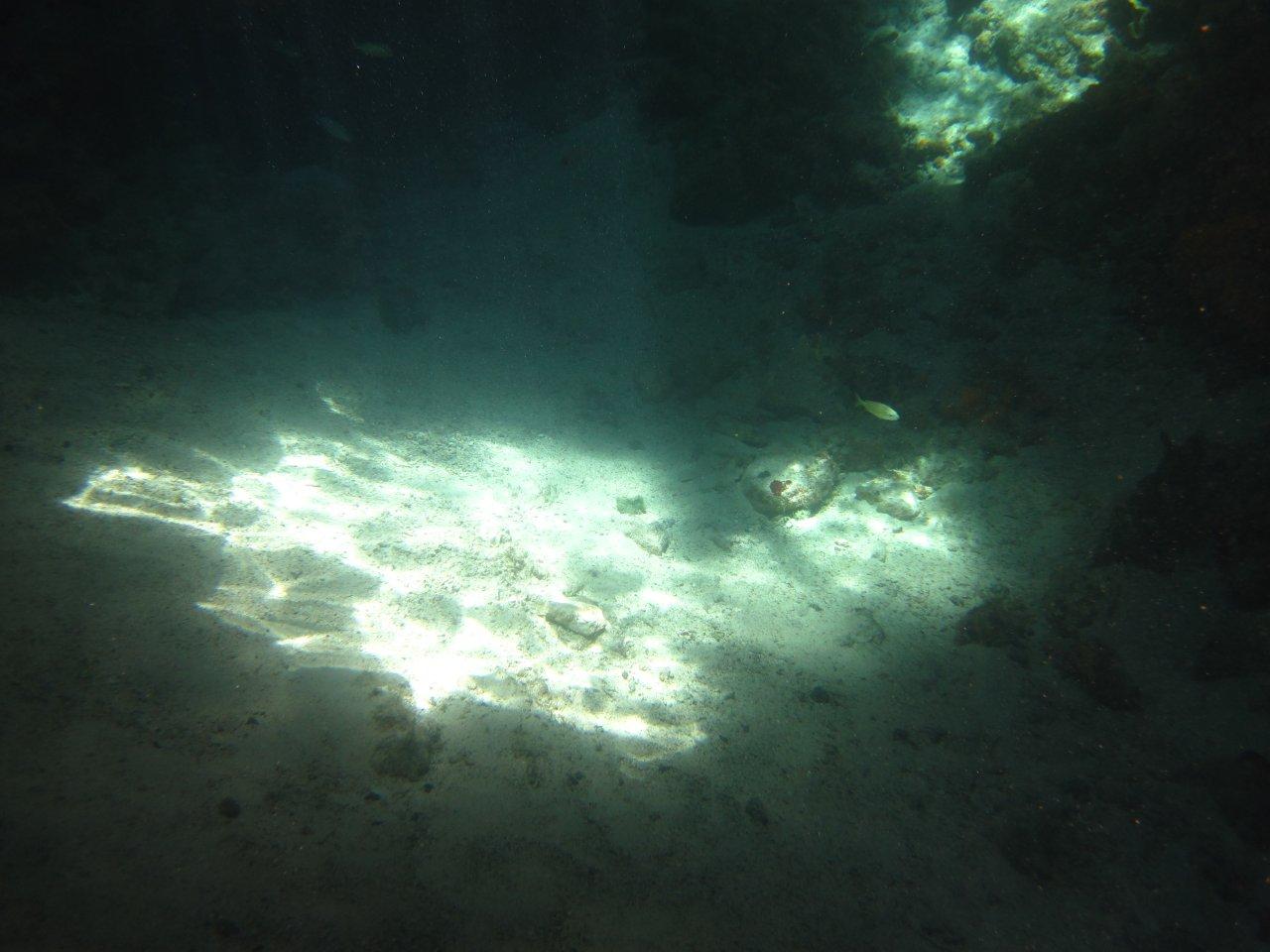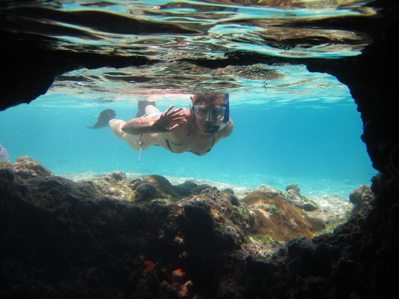 Saturday we headed over to Thunderball Grotto at low slack tide (along with every other dinghy in the area.) The inside of the grotto is very cool and there are two entrances into it. We swam in one and got the grotto experience and then we swam out the other entrance and around the outside back to the dinghy. We were alone on the outer reef and could enjoy the coral and we snapped some photos. The reef surrounding the grotto island is very beautiful and the fish are very friendly.