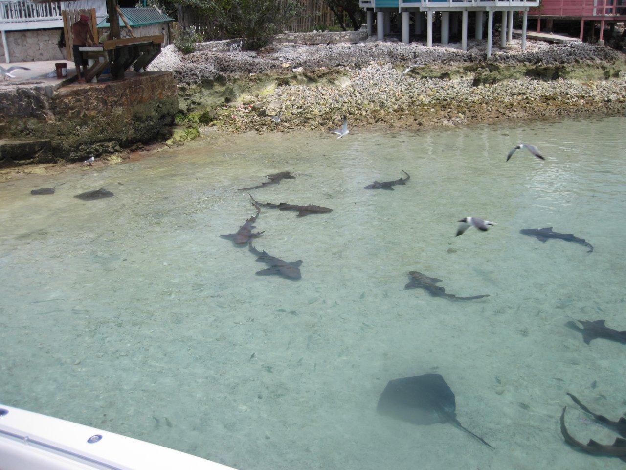 After the Grotto we headed over to the dock area at Staniel Cay Yacht Club. Many nurse sharks patrol this area looking for the scraps from fishing boats cleaning their catch. I was surprised by the size of some of these sharks, easily the largest nurse sharks I’d ever seen. Back at the boat we jumped in to swim around when I yelled to Sabrina that one of the nurse sharks was nearby. They aren’t dangerous (relatively speaking,) but we were unable to get a photo as I think he was as scared as swimmers in the water as we normally are of sharks!