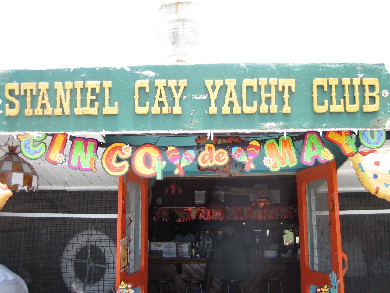 Staniel Cay Yacht Club is a popular hang-out for the boaters from the nearby anchorages and also the vacationers staying in town at the many cottages. On Saturday night they had a Cinco de Mayo party complete with margarita specials, a Mexican buffet, mariachi music, and happy hour from 4-6. They even had mint juleps on special for the running of the Kentucky Derby! They obviously know how to cater to their American clientele. We went in for happy hour and watched the derby with the rest of the very crowded bar. They had many Mexican decorations hanging up, and we wondeedr where they were able to find them in the area.