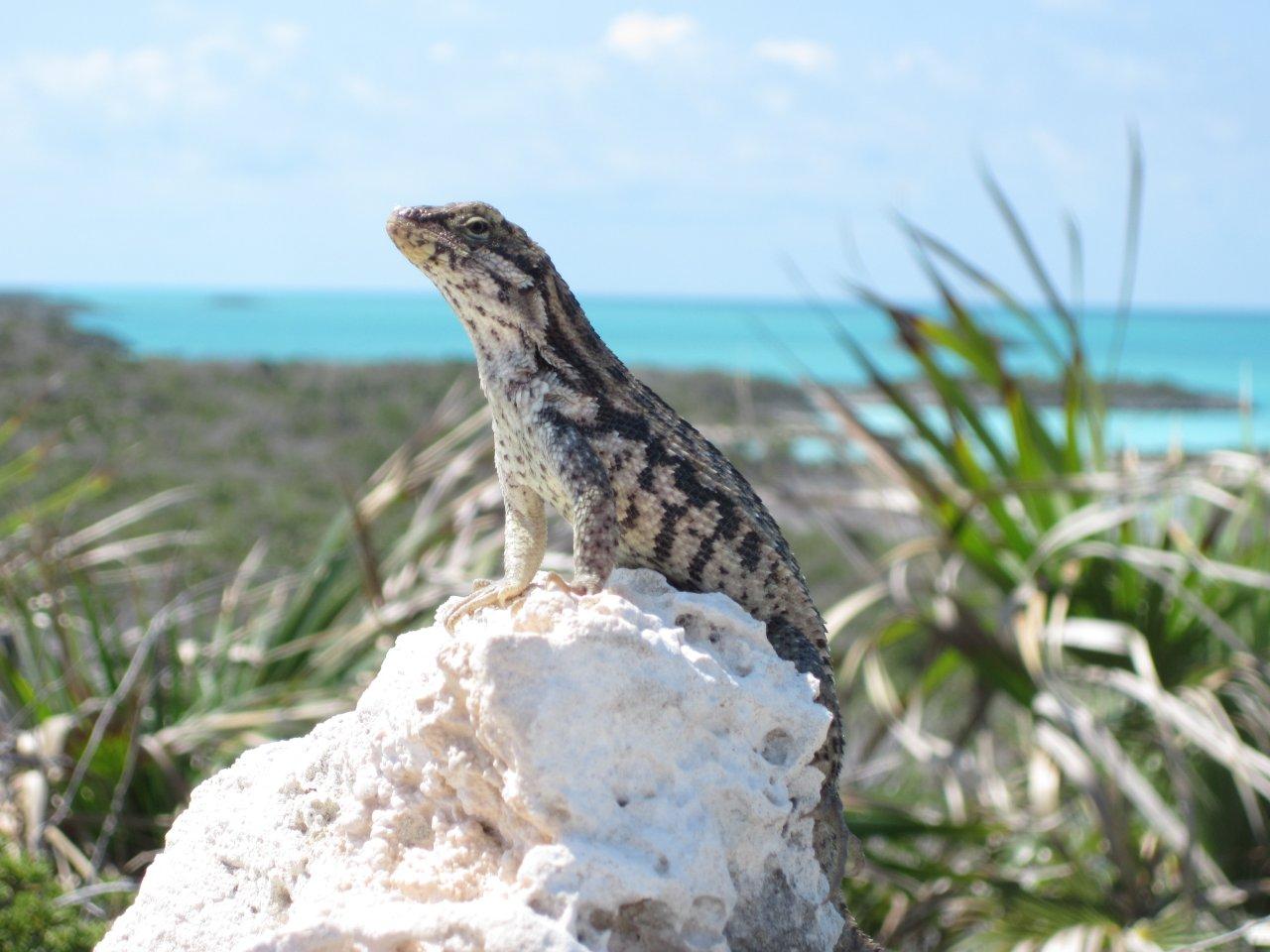 We walked along the Exuma Sound side of the island to “Pirate’s Lair” and very southern tip of the island. Along the way we gathered some trash into piles for Park pick-up and Sabrina found some sea glass. The Park is a “No-Take” reserve and while sea-glass might be considered trash, we felt that we shouldn’t take it. People put pretty shells on rocks for other to look at, so that’s we did with the sea-glass.