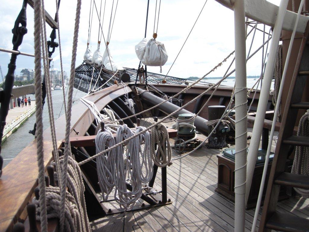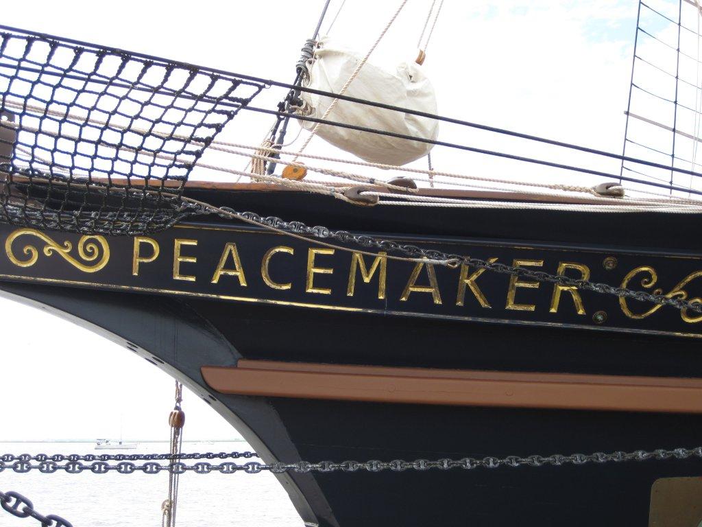 On Friday as we headed into town we noticed a sign for free tours of the tall ship “Peacemaker.” We had seen the ship on the dock, and we quickly turned around and headed back to check it out. The boat is enormous, and we watched a Powerpoint presentation about how it was built, and how they sail it. It was very impressive, and provides excellent perspective on how things have changed for voyages under sail.