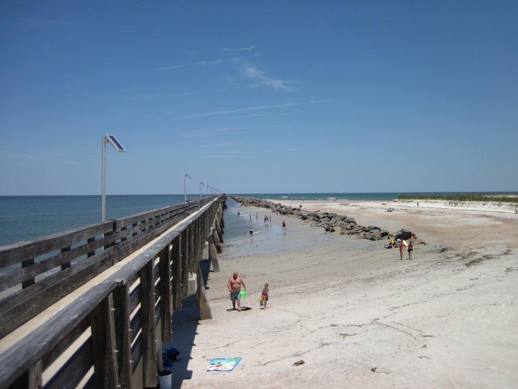 The park is beautiful and has great paved roadways for biking, and we took advantage of them to bike around the park and view the sites. We also took some hiking trails where we spotted a baby alligator and some deer. We took a long walk out the short pier long fishing pier and talked to a lot of fishermen along the way. The fish were apparently not biting for them, either.