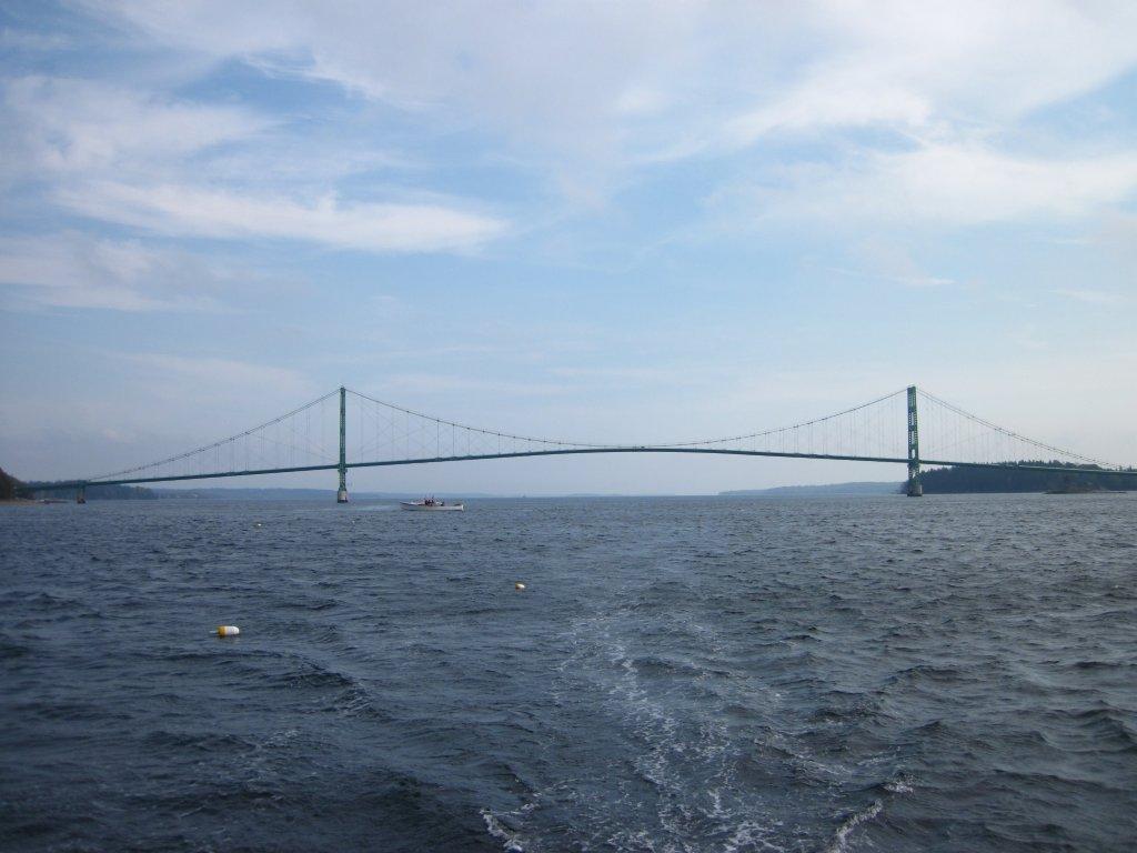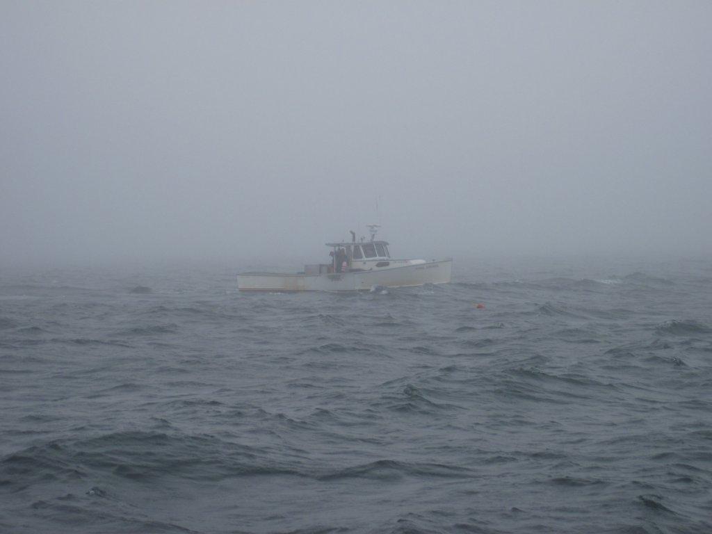 We had already prepared for fog, our radar was running (and we knew how to read it,) we had our signal bell and foghorn on deck, and we had planned ahead for what we should do. When fog takes your ability to see, you should rely more on your other senses. We were already sailing with the engine off, so we craned our necks and listened for the diesel engines of the lobster boats in the area. I also noticed that you can locate the upwind boats by smell alone. I measured visibility at less than a quarter mile, so even though I’d have a radar hit, it was still entertaining every time a lobster boat would suddenly appear, seemingly right on top of us.  All in all, we enjoyed our foray into the fog. As we reasoned it, we couldn’t come to Maine without seeing what all the fuss was about.