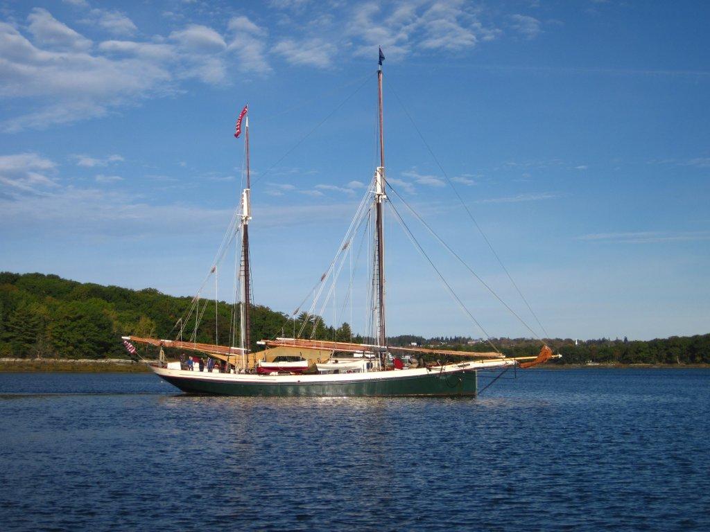 We’d mapped out some anchorages at the end of the Reach, but there was no shelter from the winds, so we continued on to Smith Cove near the town of Castine.  Late in the day we finally arrived, and found a touring schooner already anchored there, they must have know that this was the place to find a quiet anchorage. Smith Cove wasn’t where we had planned to end up, but it was protected, and it was near the town of Castine, a destination on our list.
